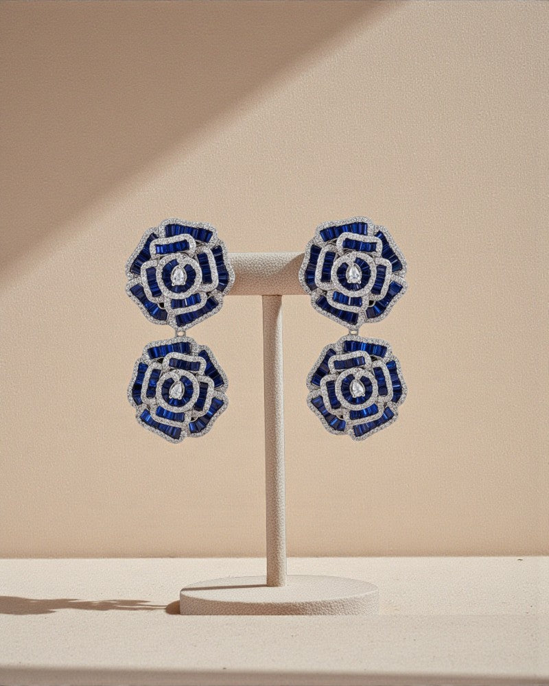 Dual Flower Earrings - These Earrings are set with premium zirconia diamonds, anti-tarnish plated and handcrafted to perfection.