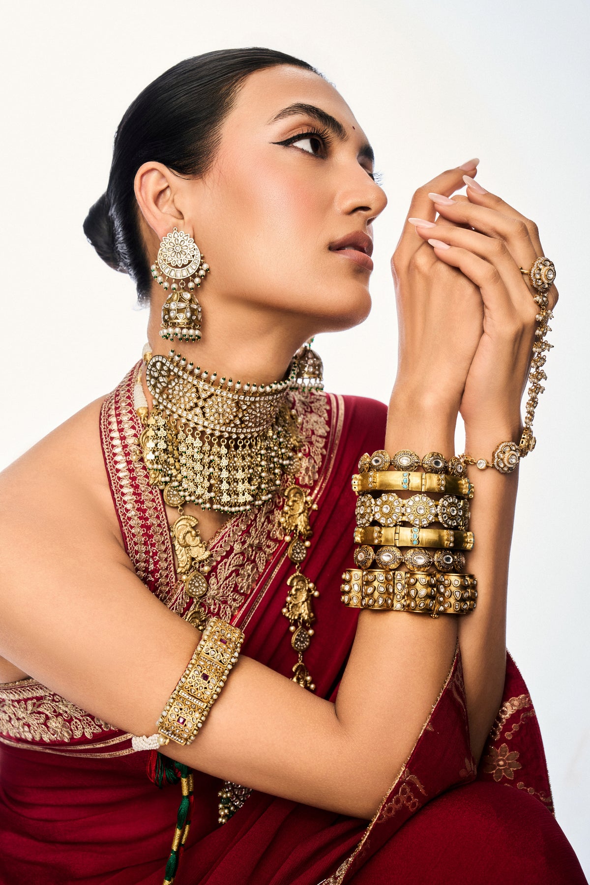 Elevate your jewelry collection with this exquisite Screw Openable Bangle. The unique screw mechanism allows for easy wear and removal, ensuring both style and convenience. The raw, uncut polki design capture light beautifully, adding a touch Perfect for festive occasions or as a statement piece for everyday wear, this bangle seamlessly blends traditional craftsmanship with modern functionality. Make a striking impression with this timeless accessory!