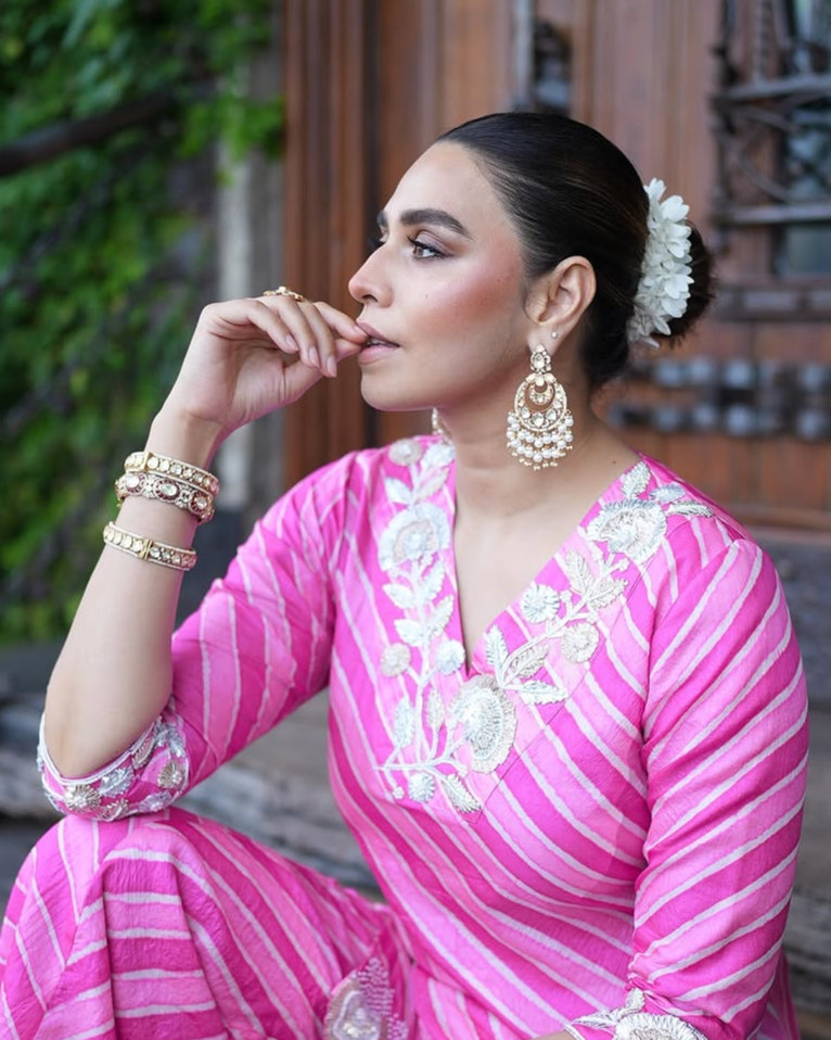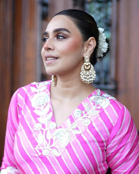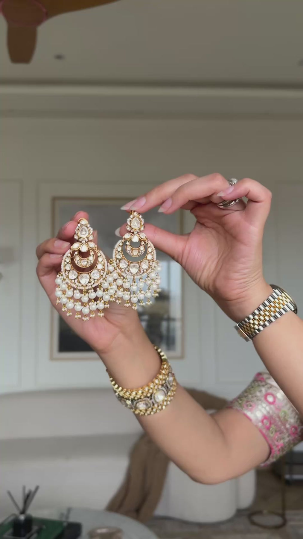 Svarna Bestseller Chandbaalis - Exquisite gold-plated earrings featuring moissanite polki stones. Adorned with dangling pearl clusters, these bestselling chandbalis blend timeless elegance with celestial charm.