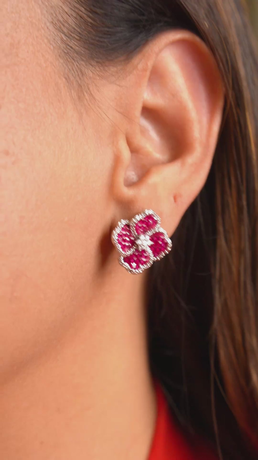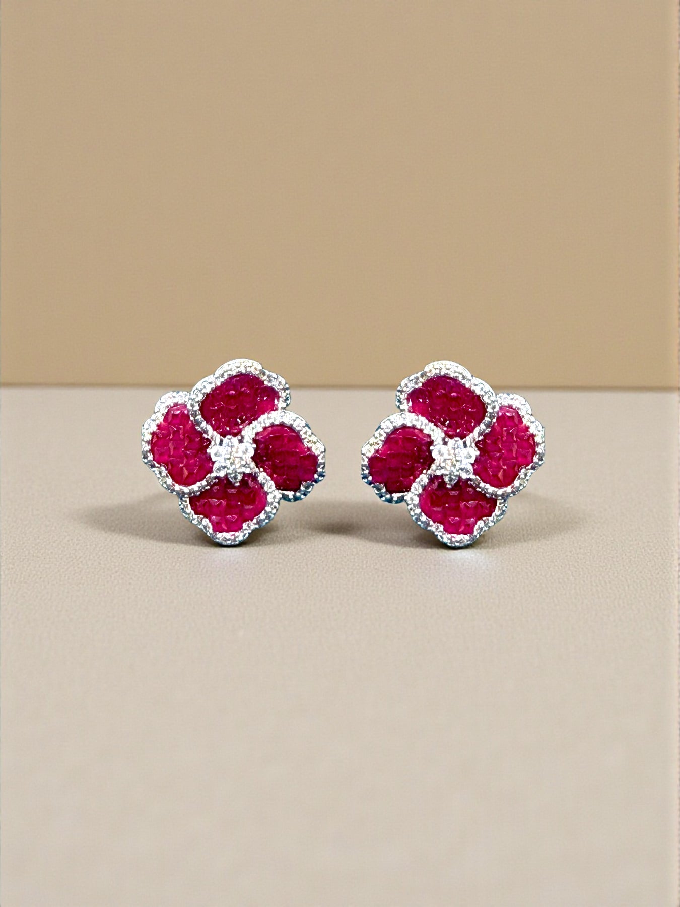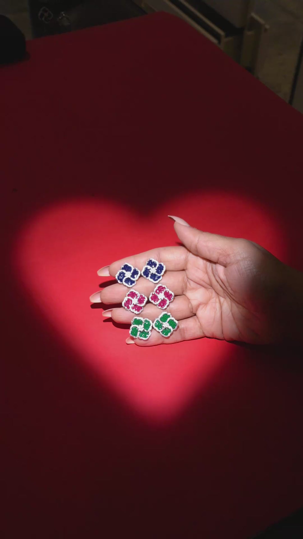 Elegant clover shaped stud earrings adorned with shimmering stones, designed to add a touch of luxury to your everyday and festive looks. Available in rich blue, ruby pink, and emerald green, each pair is delicately outlined with sparkling accents for a refined finish. Lightweight, timeless, and effortlessly chic perfect for gifting or elevating your own jewelry collection.