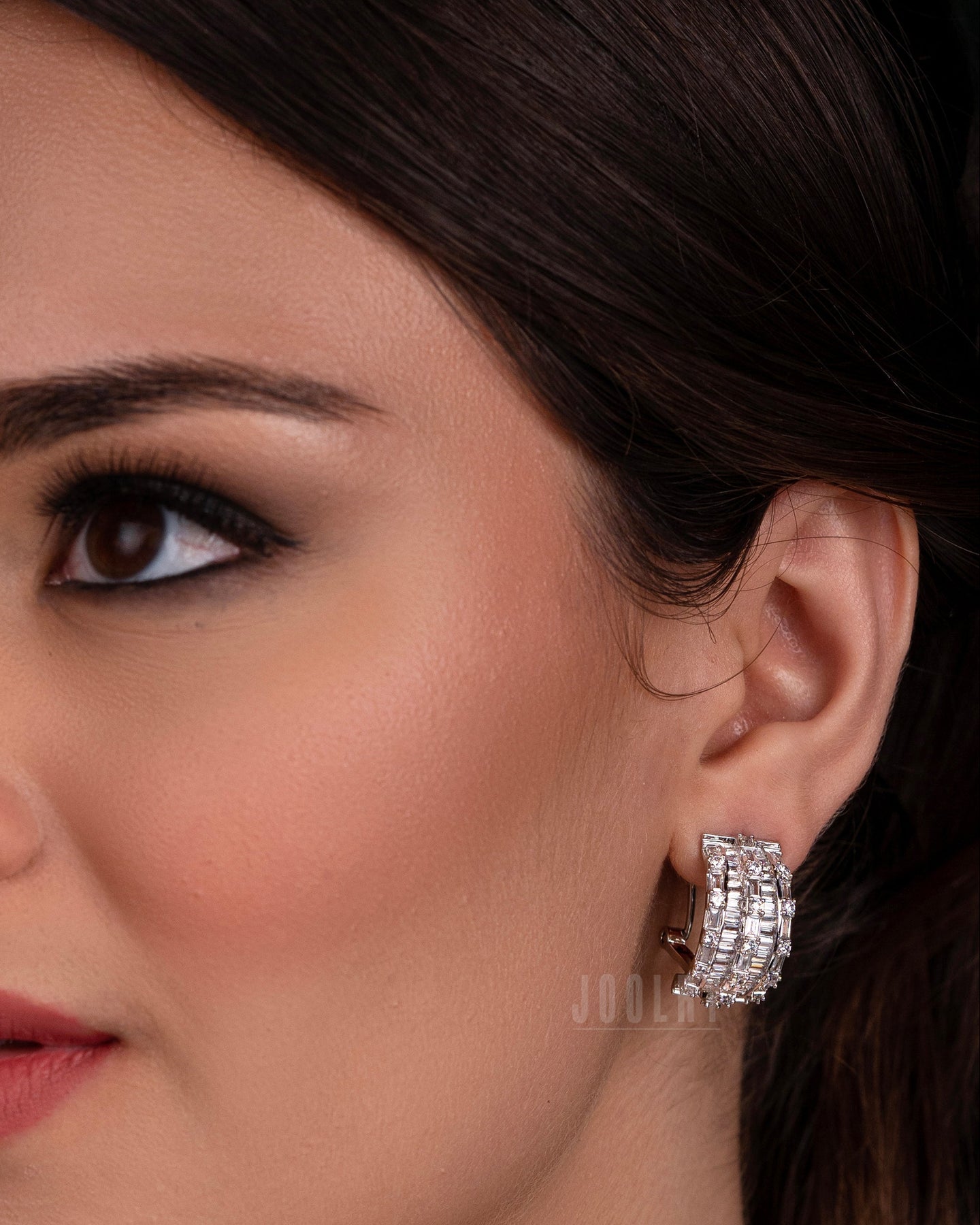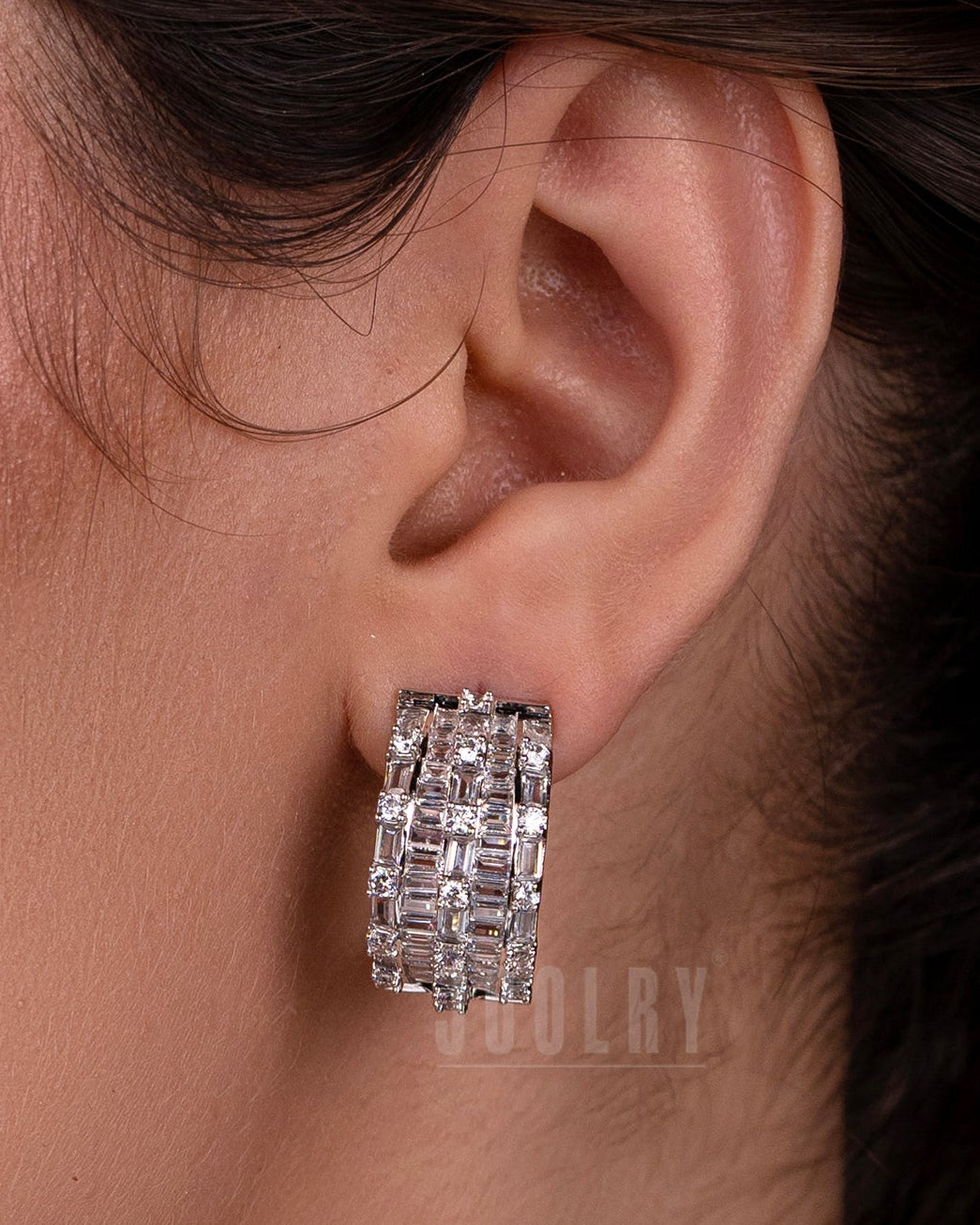 Exude effortless sophistication with our Radiant Cluster Hoop Earrings. These stunning hoops feature a cluster of precision-cut cubic zirconia stones that shimmer brilliantly from every angle. Crafted in silver with alloy and finished with electro rhodium plating, they promise lasting shine and anti-tarnish durability — a perfect blend of modern style and timeless allure.